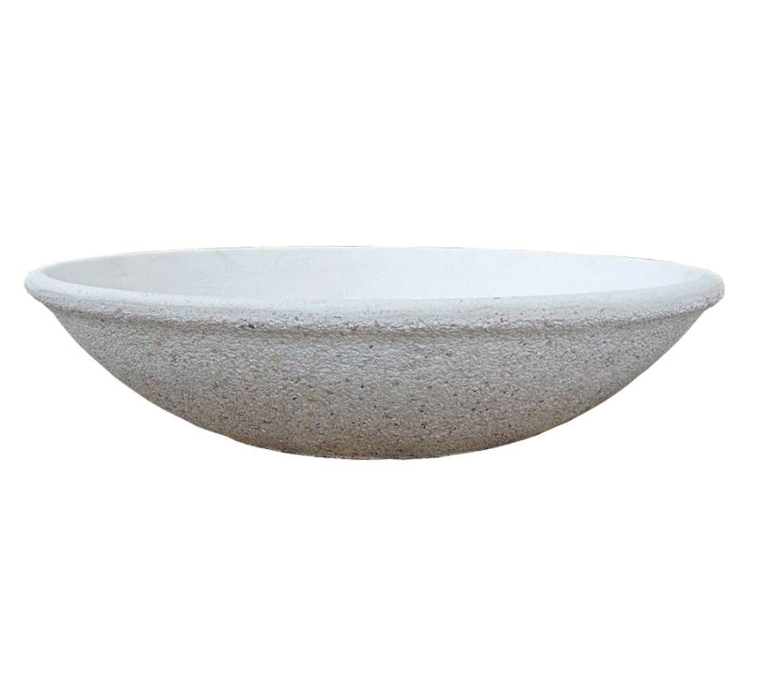 A bacia em betão com marmorite tem um acabamento britado, ideal para jardins ou áreas externas. Resistente e durável, pode ser usada como recipiente para plantas ou como elemento decorativo. Seu visual natural e rústico adiciona charme ao ambiente.