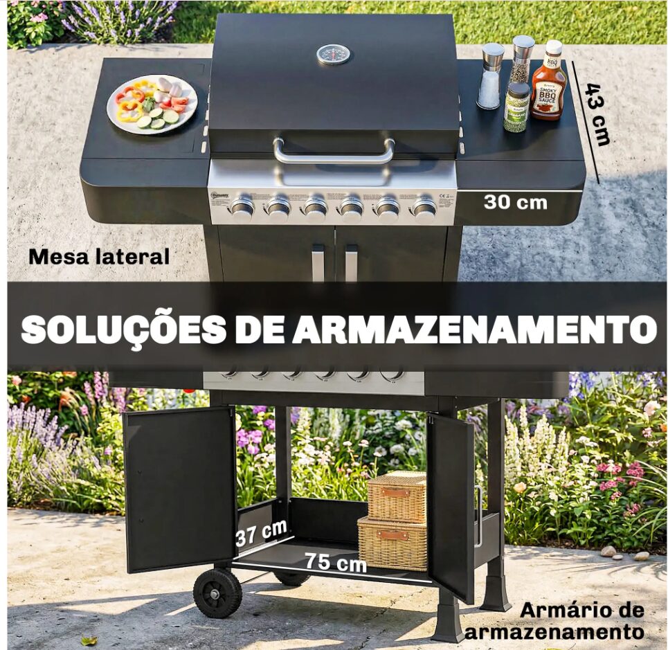 - Barbecue a gás com 6 queimadores independentes