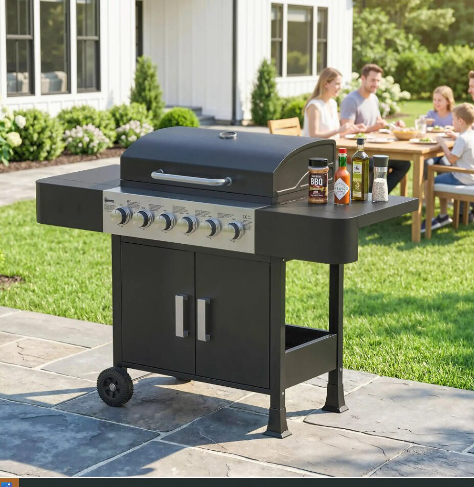 O barbecue a gás com 6 queimadores 15 kW é uma solução prática e eficiente para preparar refeições ao ar livre com conforto e controlo total da temperatura. Assim, torna-se ideal para utilizar no jardim, terraço ou outros espaços exteriores, especialmente em convívios com família e amigos.