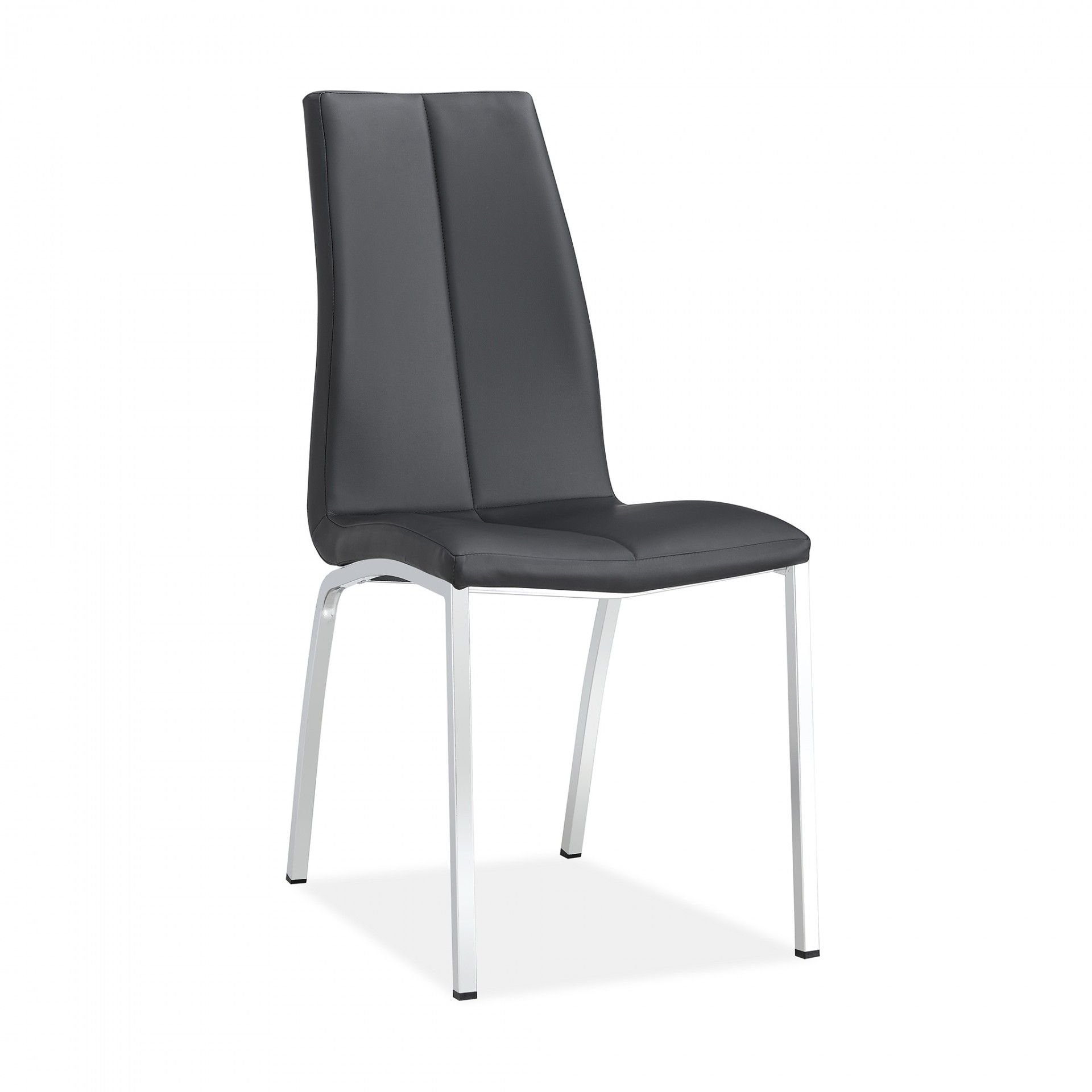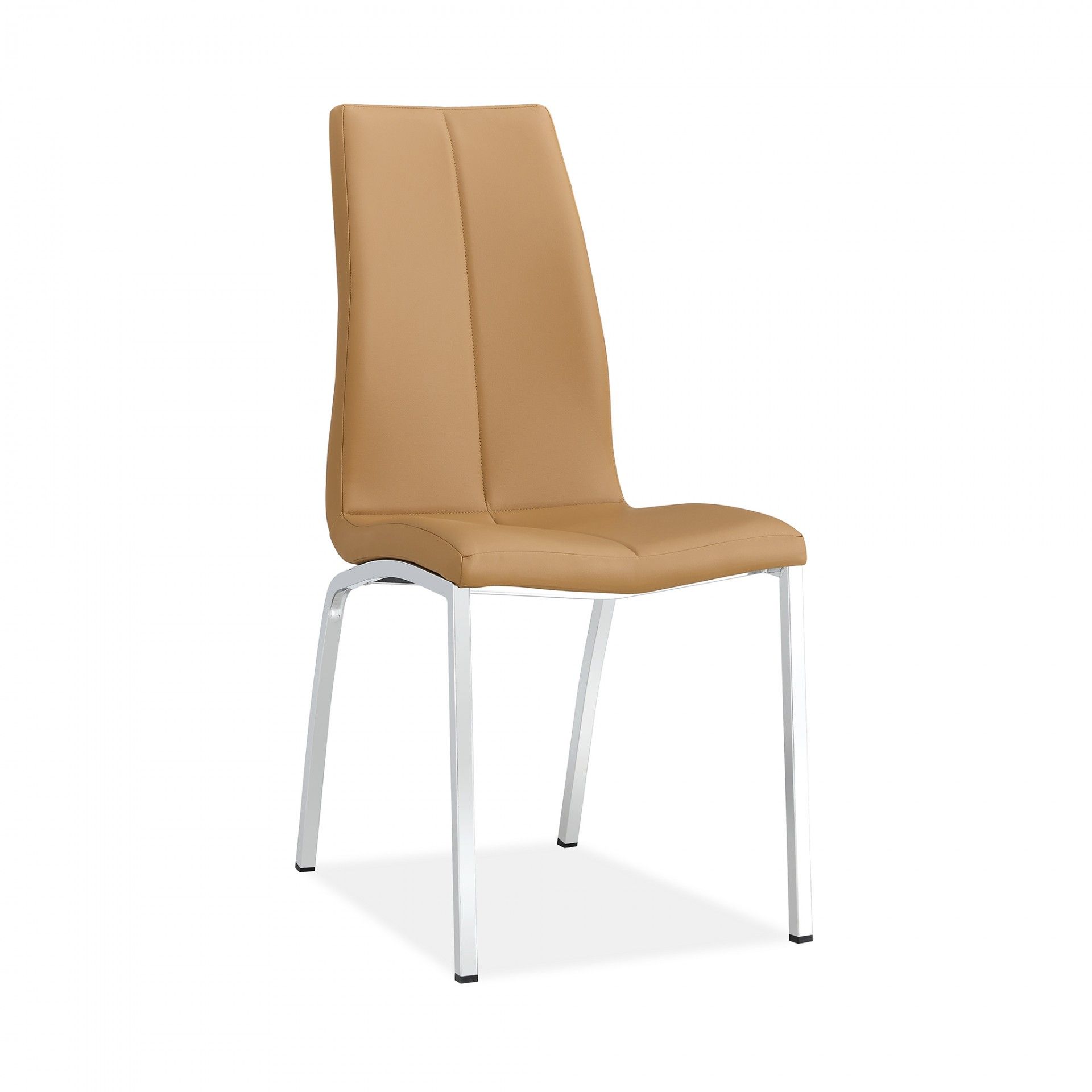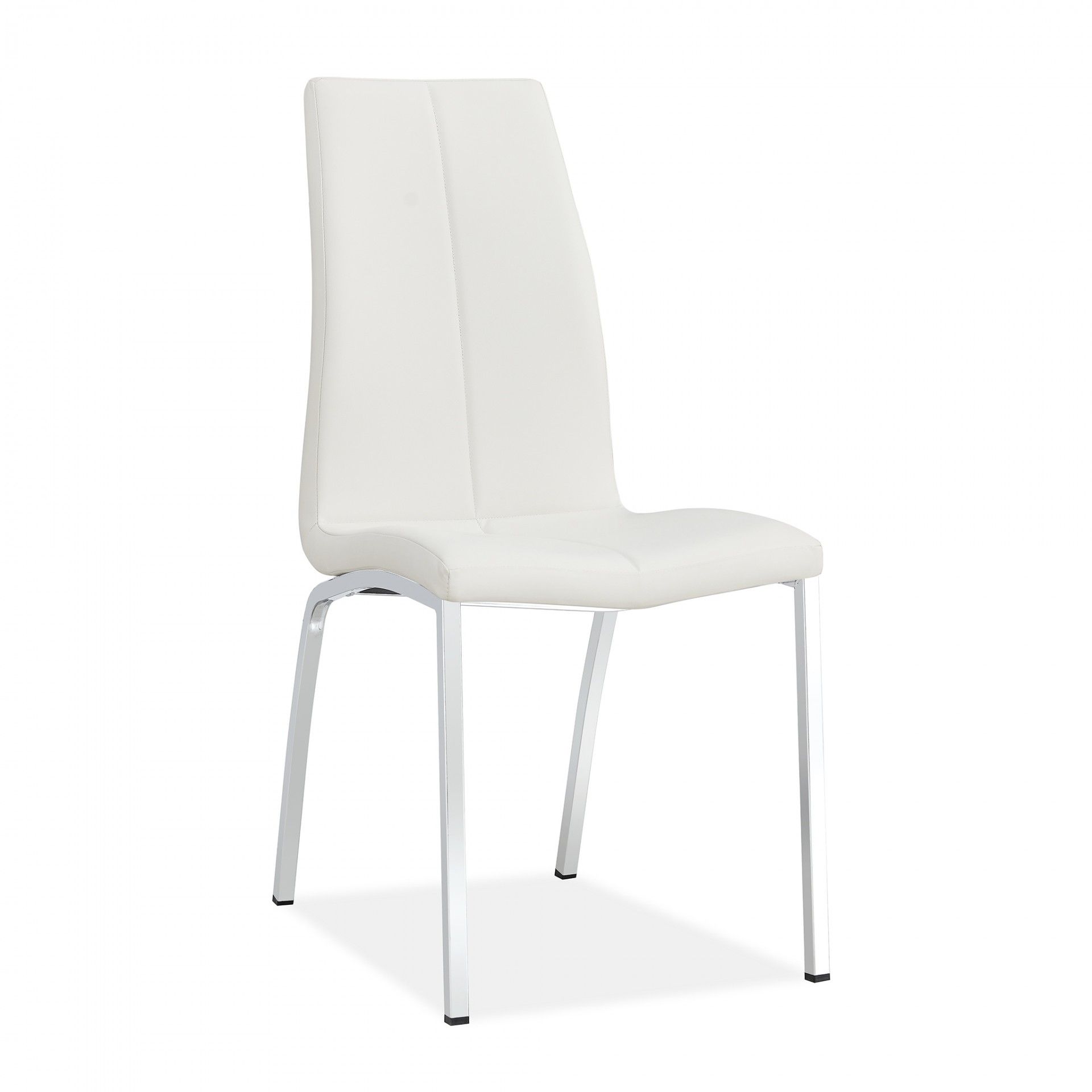 A cadeira de sala Soncino é estofada e revestida em pele sintética, oferecendo diversas opções de cores. Suas pernas cromadas e costura detalhada conferem um toque contemporâneo, enquanto o design simples permite um uso prático no dia a dia.