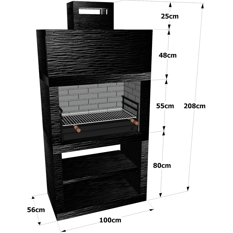 A Churrasqueira Moderna CM25 destaca-se pelo seu design modular e dimensões generosas, sendo o grelhador de 80 cm opcional. Com acabamento exclusivo em preto mate, esta churrasqueira é uma estrutura robusta e resistente, projetada para durar anos. Dessa forma, ela garante uso confiável e duradouro, tornando-se o centro das suas festas e eventos ao ar livre, e proporcionando momentos memoráveis de convívio e boa comida.