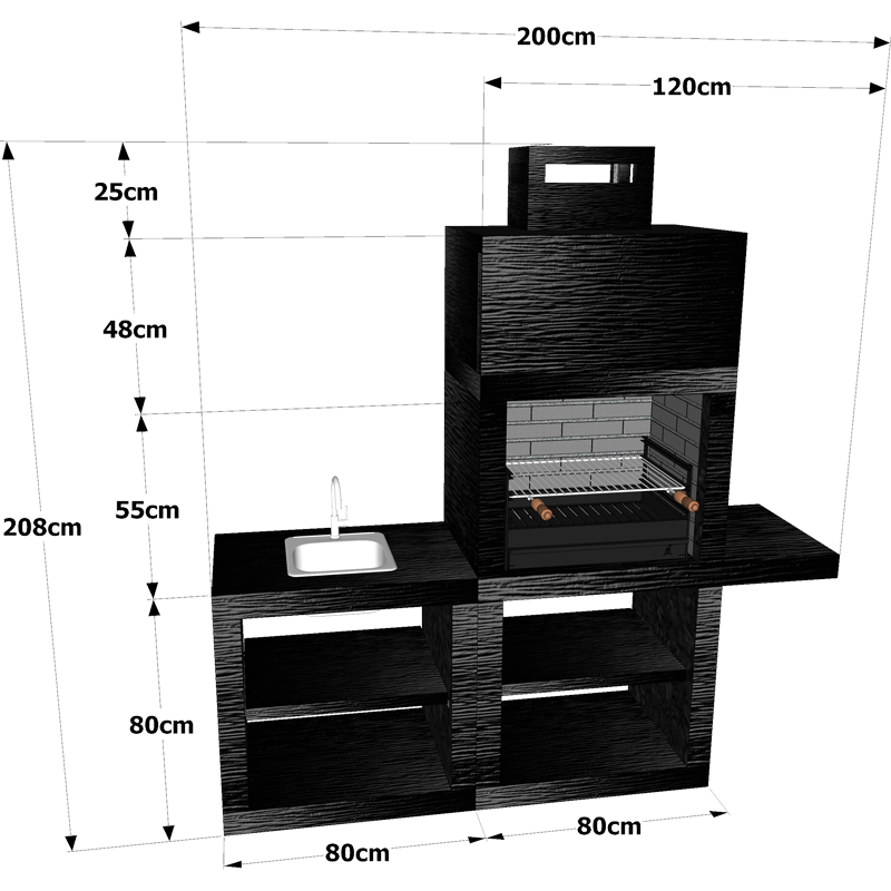 O conjunto CM45B – Churrasqueira + Bancada Lava-Louça possui medidas de L200 x A208 x P56 cm e peso total de 1021 kg, oferecendo uma ampla área de preparação e lavagem. Para maior versatilidade, é possível incluir um grelhador de pousar de 60 cm opcional, que permite grelhar diferentes tipos de alimentos de maneira uniforme e eficiente. Assim, você pode preparar churrascos completos, desde carnes e peixes até vegetais, de forma prática e organizada.