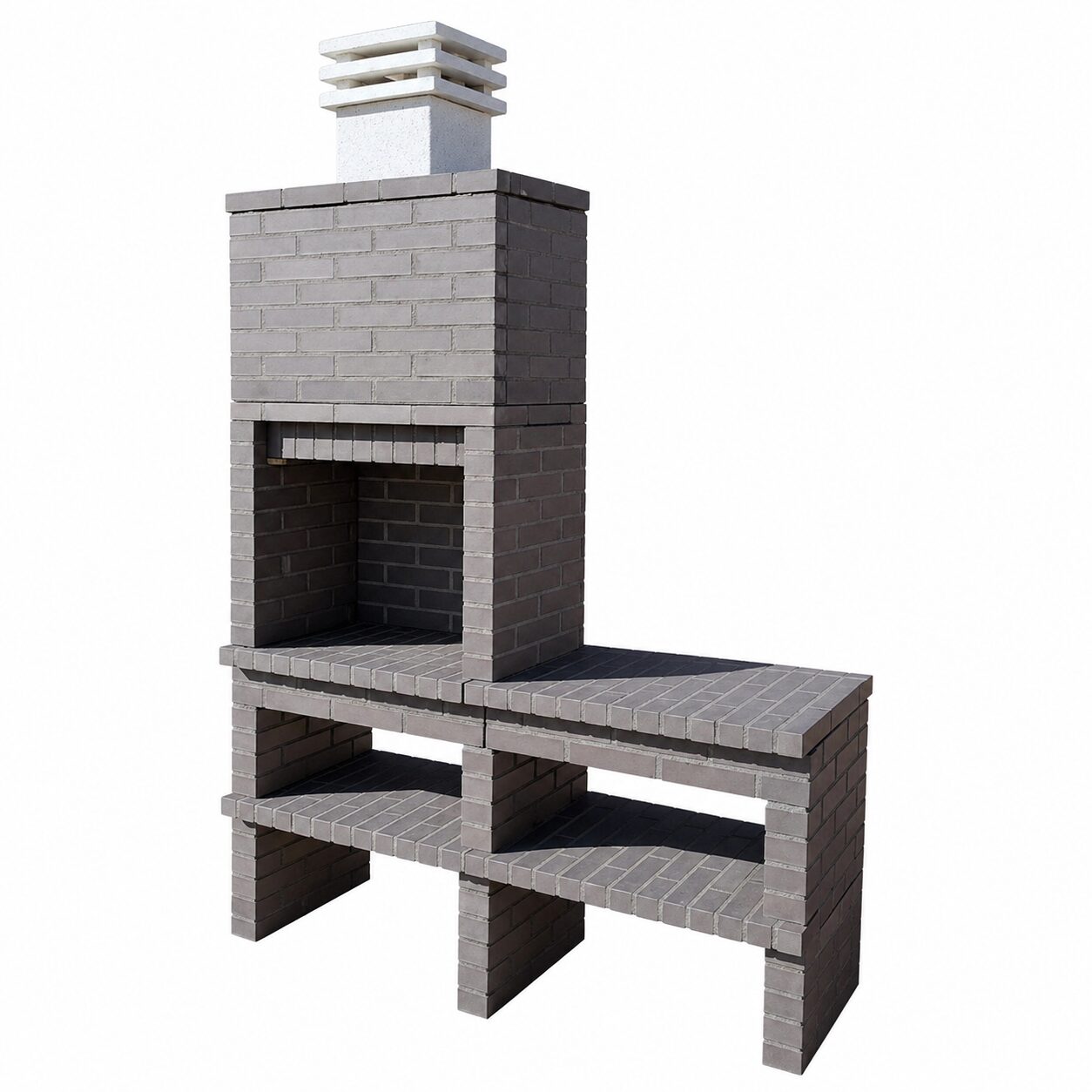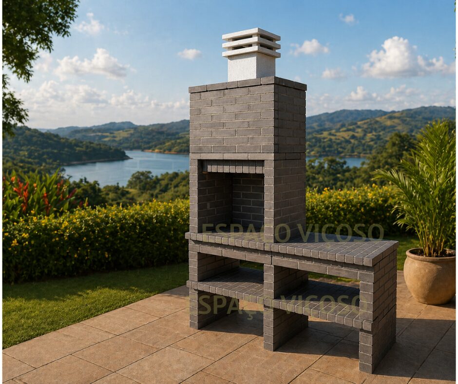 A churrasqueira é construída em tijolo cinzento de alta qualidade com linhas direitas e acabamento moderno. Dessa forma, garante estabilidade, segurança e longa durabilidade ao longo do tempo.