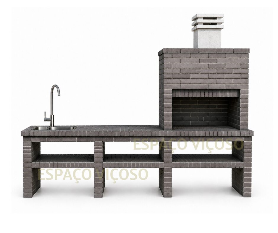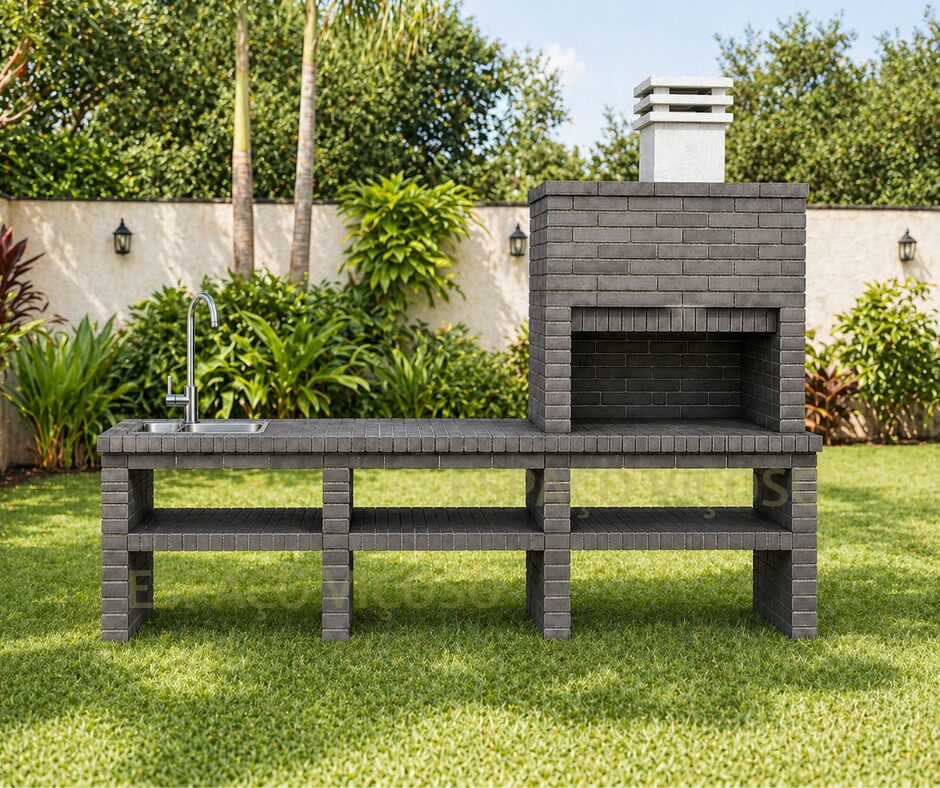 Churrasqueira com bancadas em tijolo cinzento ESPVCH138-CZ-ESQ com lava-loiça incluído