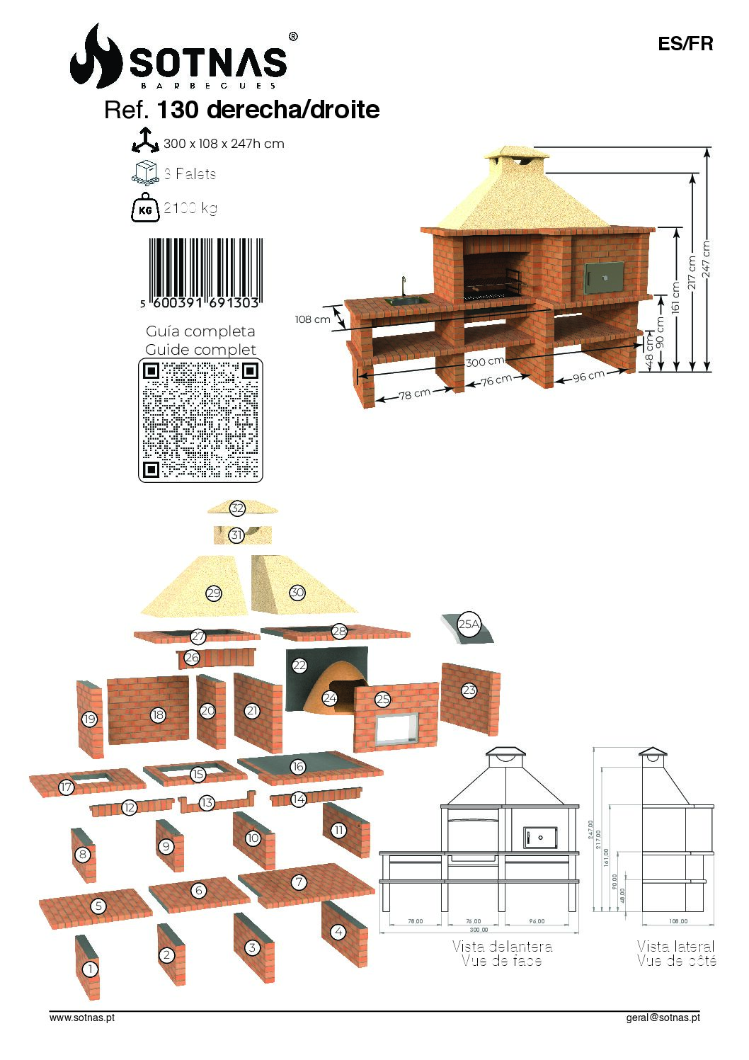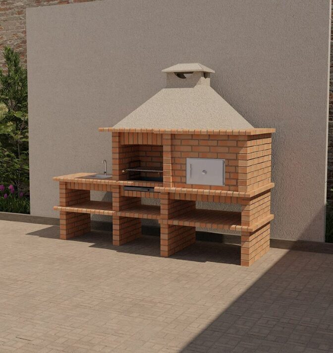 A Churrasqueira com Forno e Bancada com Lava-Loiça Direita Ref. 130D é uma solução completa para criar uma verdadeira cozinha tradicional no exterior. Além disso, permite organizar num único conjunto a zona de churrasco, forno e preparação de alimentos de forma prática e funcional.