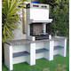 Churrasqueira Camping com bancada de lava loiças e fogão.A Churrasqueira Connect da Nesh é feita com materiais de alta qualidade, como betão pintado a preto e branco e tijolo refratário cinza. Equipada com grelha em aço, gaveta para recolha de cinzas, braseiro para lenha e carvão, e chaminé para melhor extração de fumos, oferece uma experiência completa de grelhados.