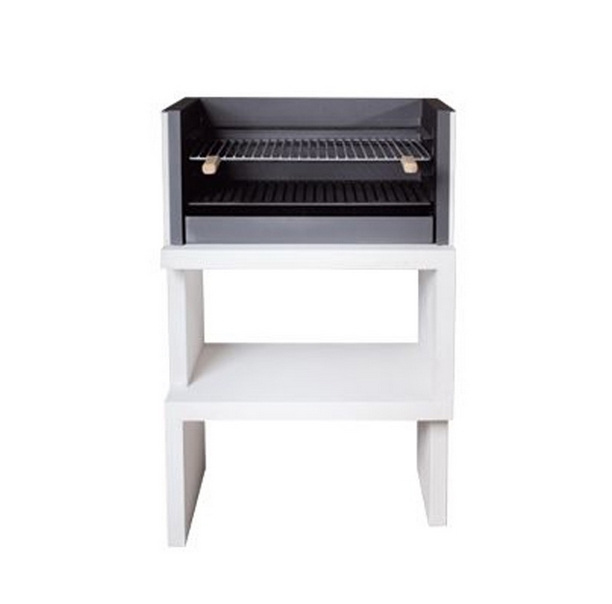 Inclui: Grelha em aço inoxidável, tabuleiro recolhe-cinzas e suporte para carvão