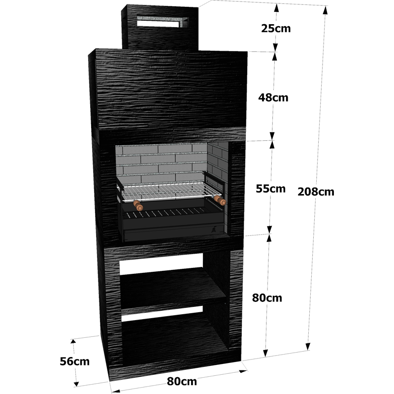 Churrasqueira MidiA Churrasqueira Midi é uma escolha elegante e funcional para os amantes de churrascos. Com estrutura robusta em betão pintado a preto e branco, e câmara de combustão e topo das bancadas em tijolo refratário cinza, esta churrasqueira proporciona durabilidade e eficiência.