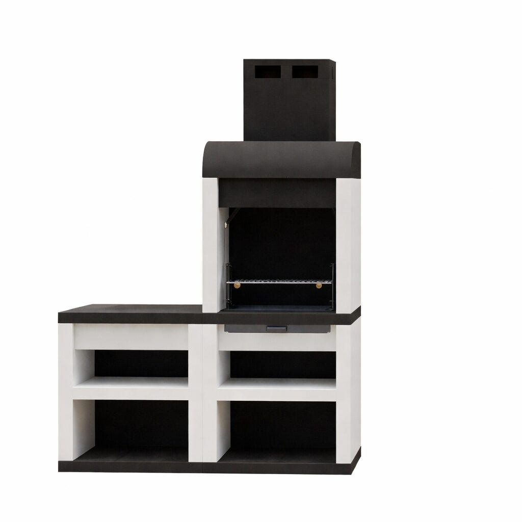 Fabricada em Portugal com cimento pigmentado de elevada qualidade nas cores branco e antracite, esta churrasqueira combina resistência, durabilidade e estética moderna, sendo indicada para utilização exterior durante todo o ano. Além disso, apresenta costas fechadas tanto na churrasqueira como nos módulos de apoio, garantindo maior robustez estrutural, melhor proteção e um acabamento mais cuidado.