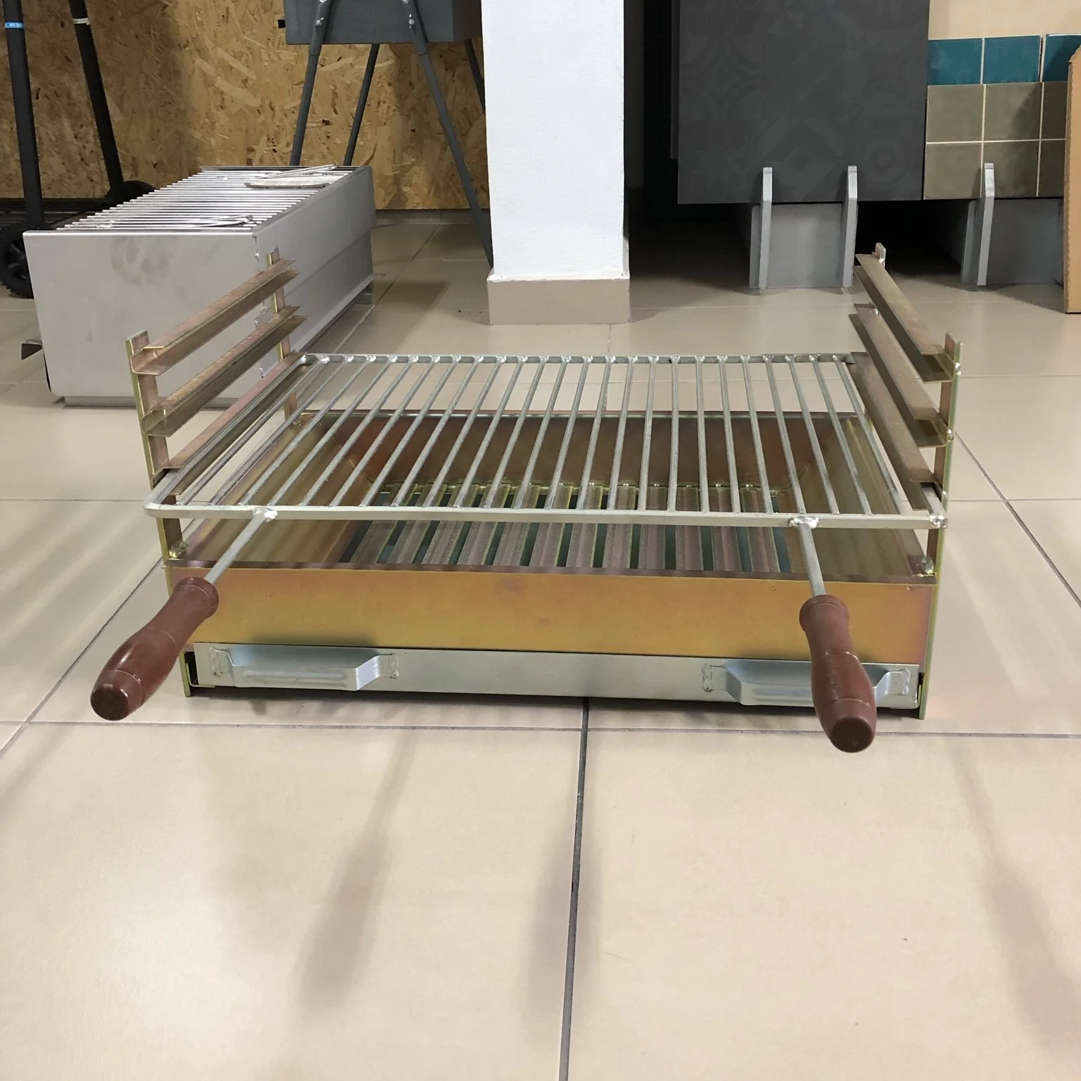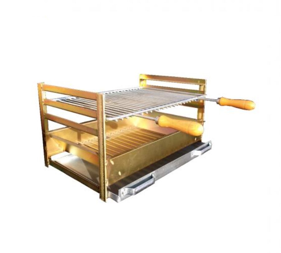 Grelhador com calhas em ferro zincado, com 3 posições ajustáveis. Inclui 1 grelha. Disponível em várias medidas