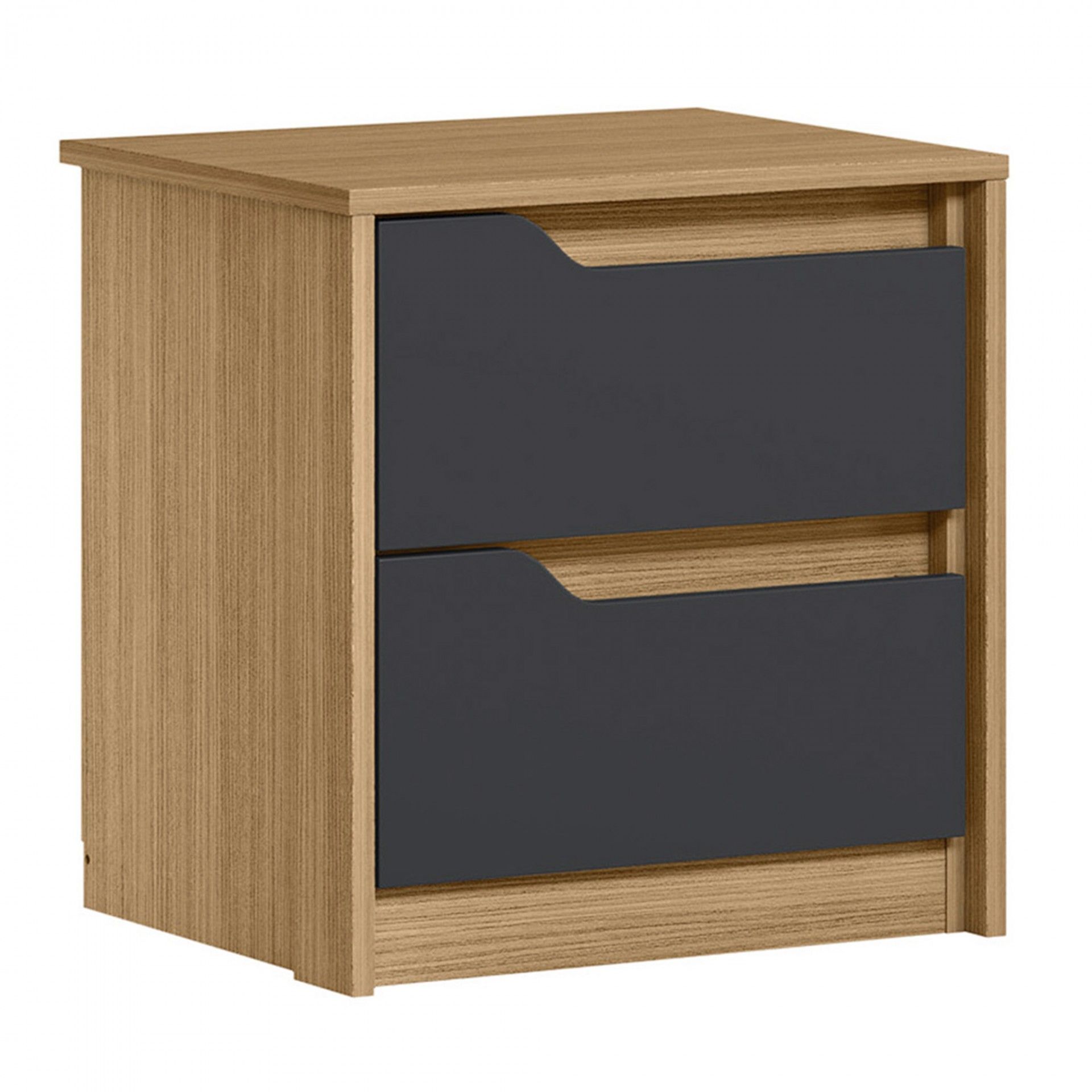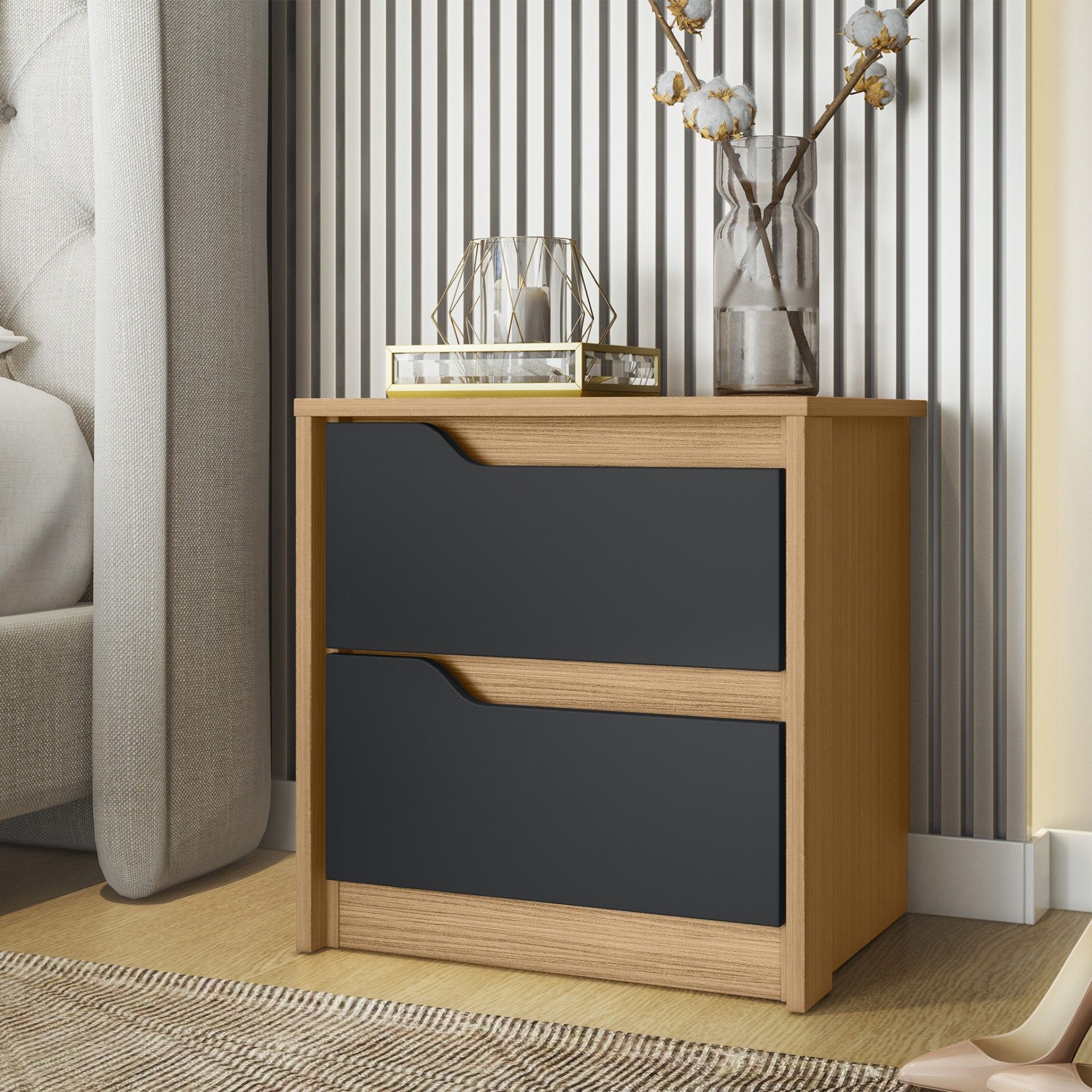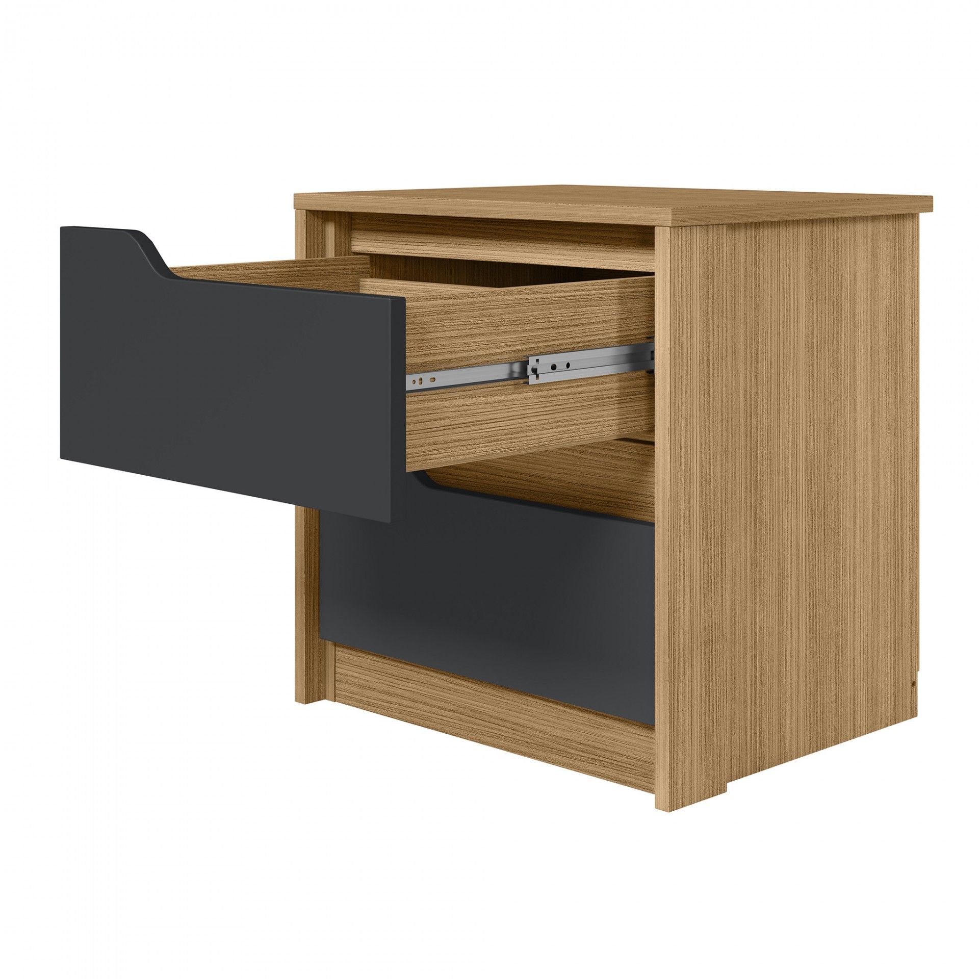 Fabricado em Aglomerado de Madeira revestido a cor carvalho e branco mate