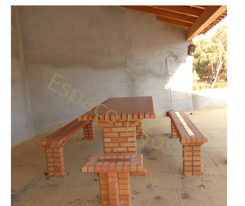 Além disso, a estrutura em tijolo confere elevada estabilidade e longa durabilidade, mesmo quando instalada em zonas exteriores. Por esse motivo, é uma mesa pensada para permanecer no espaço ao longo dos anos. Ainda assim, mantém o seu aspeto original, resistindo às variações climáticas e ao uso frequente. Do mesmo modo, os bancos acompanham a mesa no mesmo estilo, garantindo conforto, coerência visual e um conjunto equilibrado.