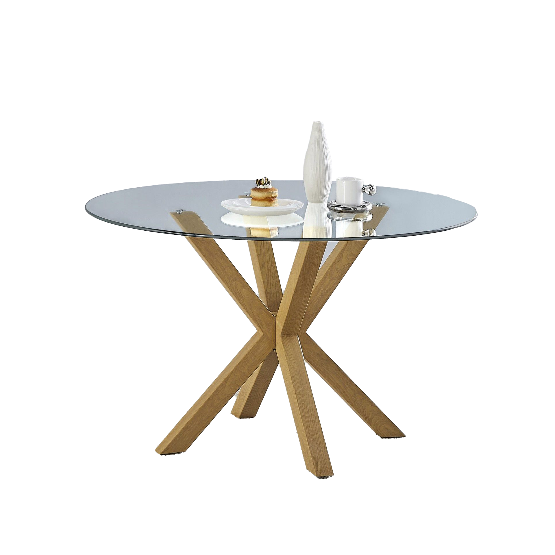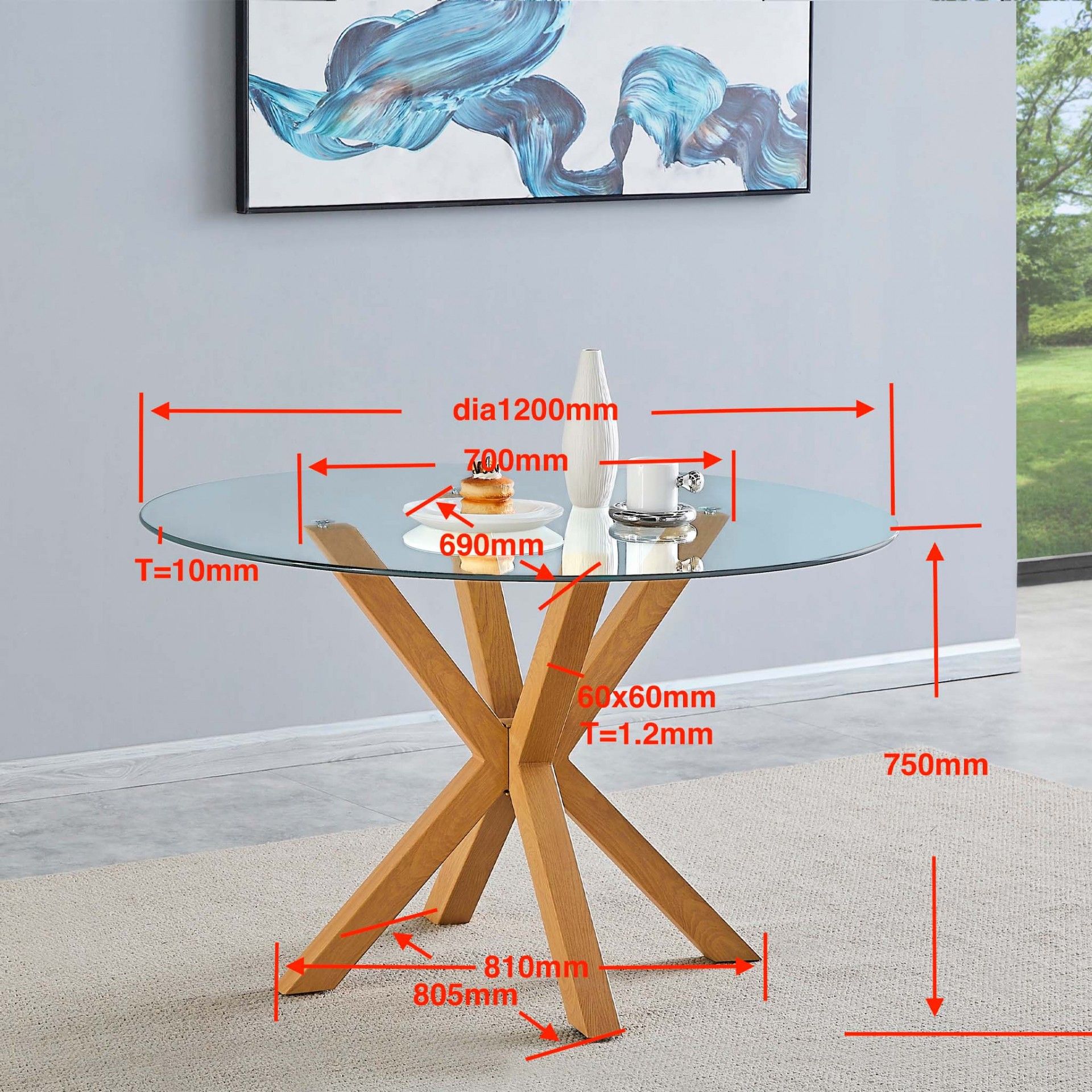 A Mesa Redonda Biarritz é uma peça notável, com uma base elegante e requintada em madeira que se destaca, complementada por um imponente tampo de vidro temperado transparente. Esta mesa de jantar é uma escolha maravilhosa para qualquer projeto de mobiliário e decoração, adicionando um toque de sofisticação e charme ao ambiente.