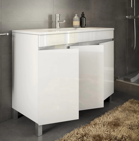 - L100 x A81 x P36 cm: Estrutura com 3 portas, Posição do Lavatório ao Centro.