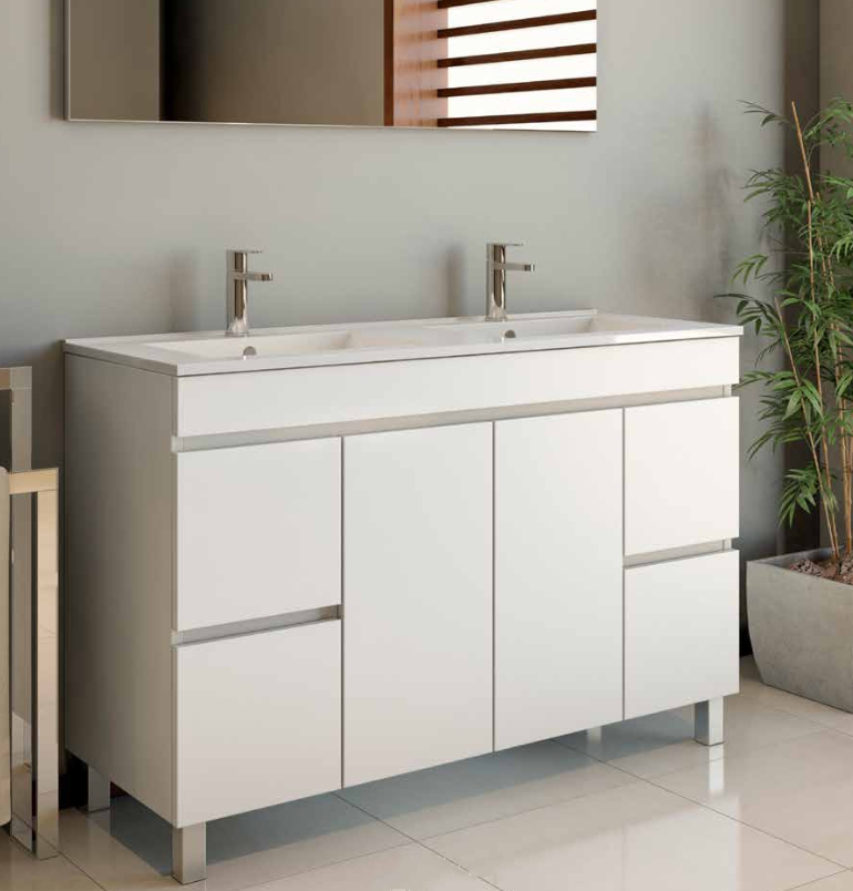 - L100 x A81 x P45 cm: Estrutura com 2 portas + 2 gavetas, Posição do Lavatório ao Centro.