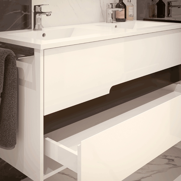 O móvel da gama Helios é uma excelente opção para a sua casa de banho. Com um design suspenso, está disponível em diversos tamanhos para se adaptar perfeitamente ao espaço disponível. Possui duas gavetas com abertura suave, proporcionando praticidade no armazenamento dos seus objetos. O acabamento pode ser em brilho ou mate, conforme sua preferência. Feito com materiais de qualidade, como aglomerado e MDF, garante durabilidade e resistência. Acompanha um kit de fixação à parede para uma instalação fácil e segura.