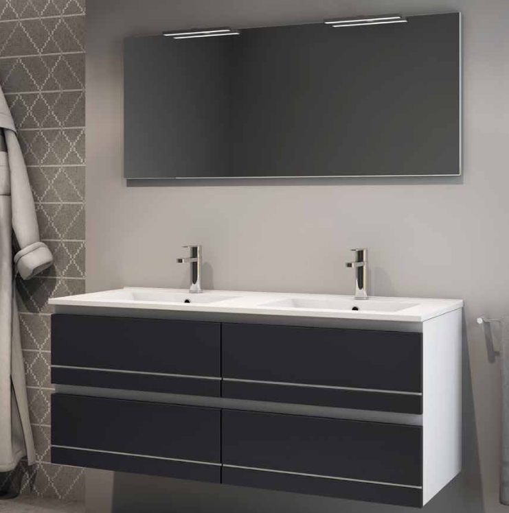 - L120 x A50 x P45 cm: Estrutura com 4 gavetas, 2 lavatórios