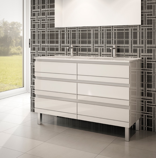 - L120 x A81 x P45 cm: Estrutura com 6 gavetas, 2 lavatórios ao Centro.