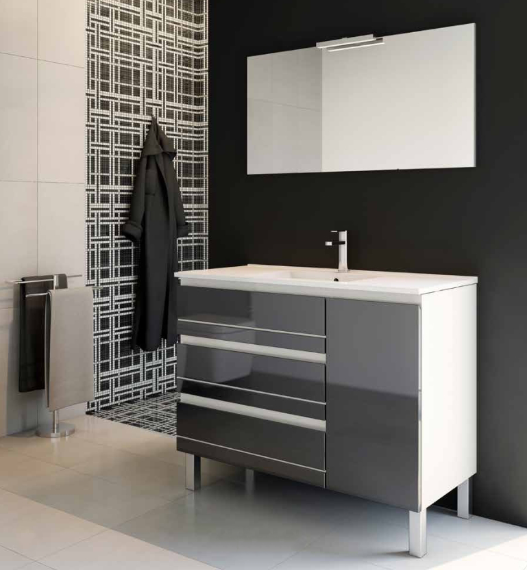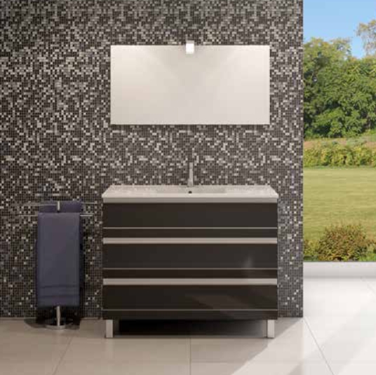 - L100 x A81 x P45 cm: Estrutura com 3 gavetas, Posição do Lavatório ao Centro.