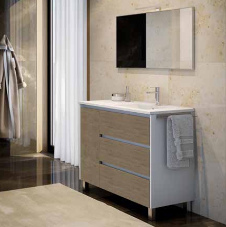 - L100 x A81 x P45 cm: Estrutura com 1 porta e 3 gavetas, Lavatório à Direita.
