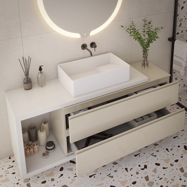 - Tipo: Móvel com tampo para casa de banho.