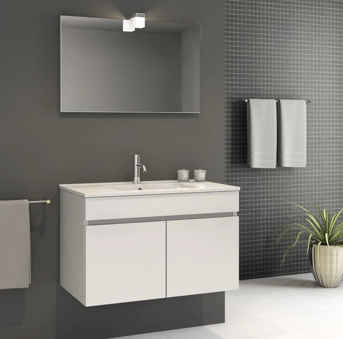 - L80 x A50 x P45 cm: Estrutura com 2 portas, Posição do Lavatório ao Centro.
