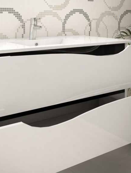 Móvel New Ripper com TampoMóvel suspenso de casa de banho em MDF com 1 gaveta espaçosa, sistema soft close e fixação regulável. Disponível em vários tamanhos e acabamentos mate ou brilho.
