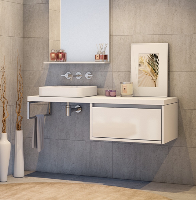 Móvel PalaceOs móveis suspensos da gama Palace combinam estilo e praticidade para transformar a sua casa de banho num ambiente moderno e funcional. Com uma única gaveta de abertura suave, oferecem espaço de armazenamento essencial para manter a sua casa de banho organizada.