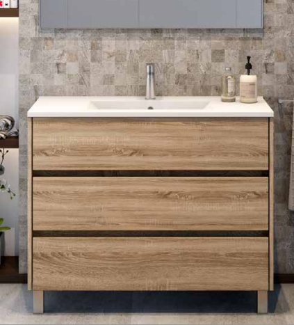 - L100 x A81 x P45 cm: Estrutura com 3 gavetas, 1 lavatório, Posição do Lavatório ao Centro.