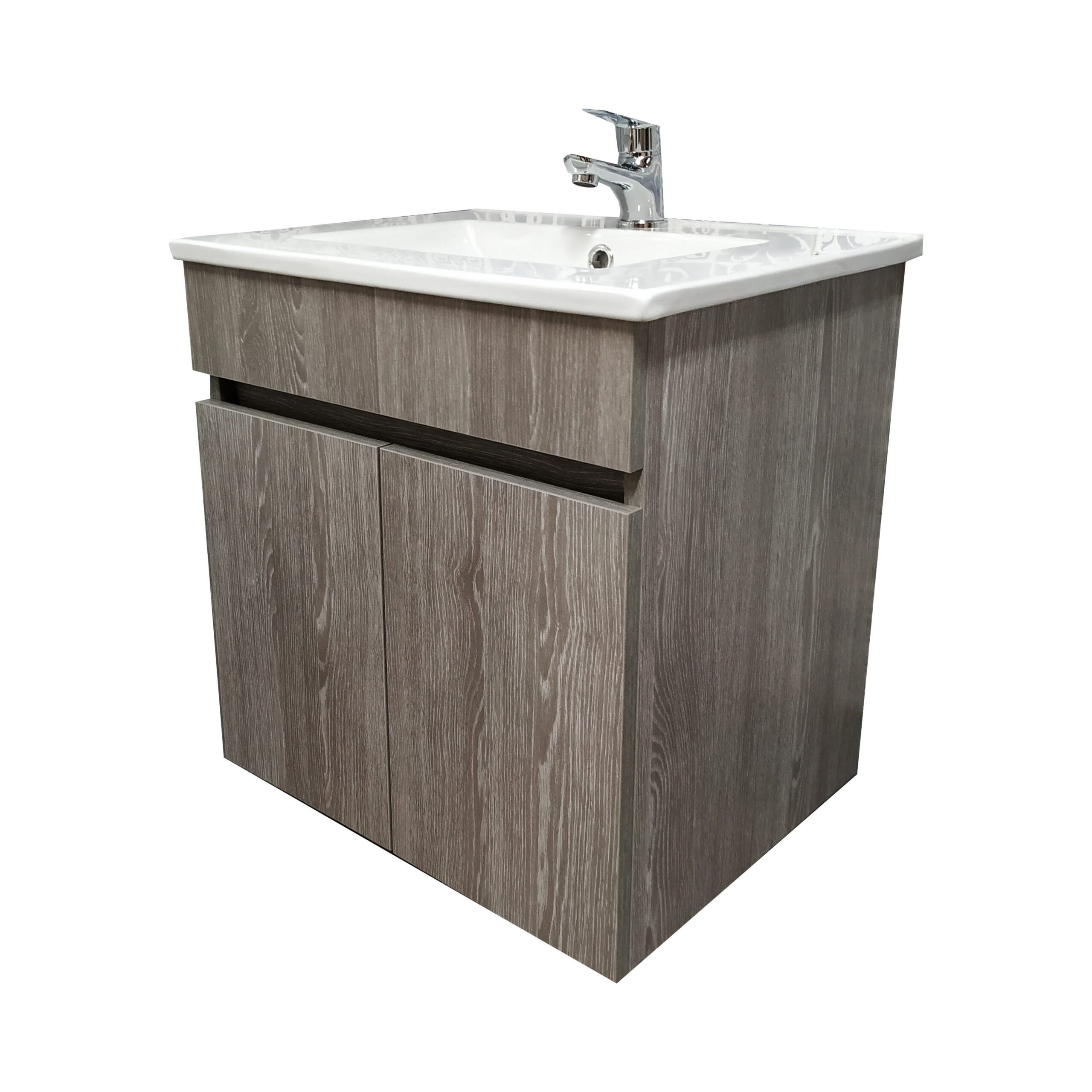 Este modelo está disponível em duas medidas: 60 cm e 80 cm de largura, sempre com 50 cm de altura e 36 cm de profundidade. A estrutura inclui 2 portas espaçosas, enquanto o lavatório cerâmico encastrado ao centro garante harmonia e conforto no uso diário. O sistema Soft Close das portas proporciona um fecho suave e silencioso, evitando ruídos e desgaste do móvel ao longo do tempo.