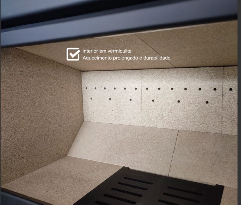 Além disso, o seu vidro panorâmico resistente valoriza a chama e proporciona um ambiente acolhedor e sofisticado. Enquanto isso, o funcionamento com ventilação forçada assegura uma distribuição homogénea do calor. Consequentemente, o baixo consumo de lenha (3,3 kg/hora) traduz-se em poupança e sustentabilidade. Assim, você obtém um produto eficiente e económico, sem comprometer o conforto.