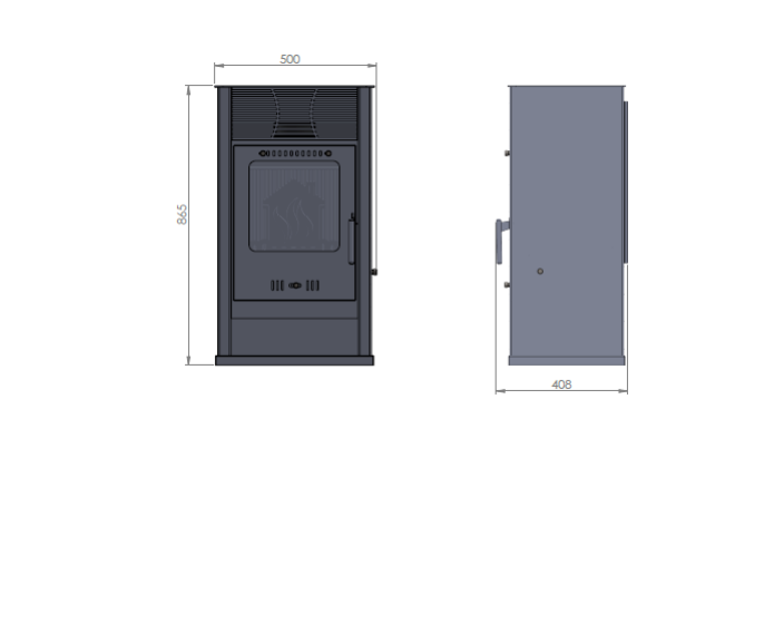 A sua estrutura em aço reforçado de 2 mm, juntamente com a câmara de combustão em ferro fundido de 11 mm, assegura durabilidade e distribuição uniforme do calor.