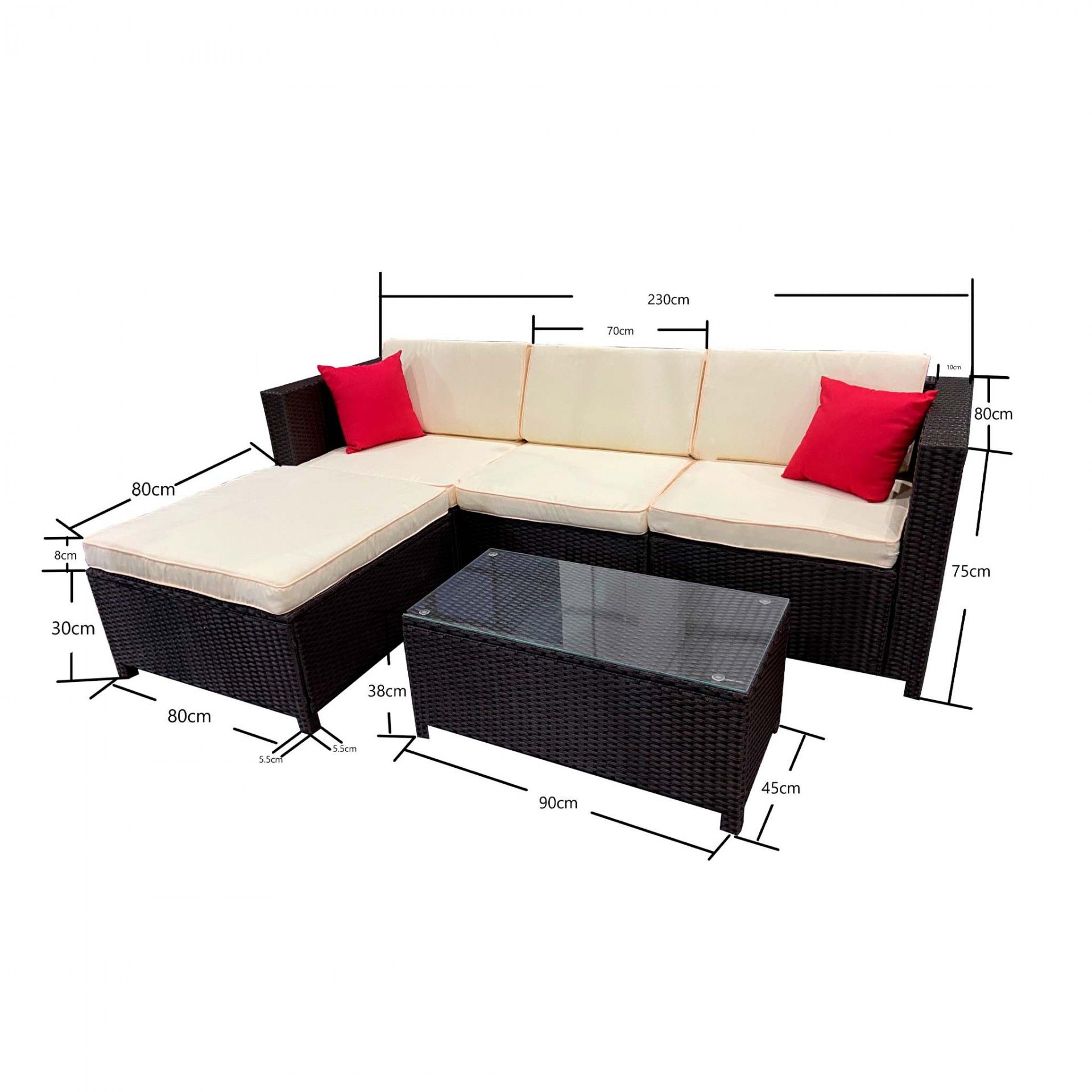 Este conjunto é composto por sofá com chaise-longue e mesa de apoio com tampo em vidro, permitindo assim criar um ambiente acolhedor para momentos de descanso e convívio ao ar livre. Por isso, torna-se uma escolha prática e funcional para reunir família e amigos com conforto.