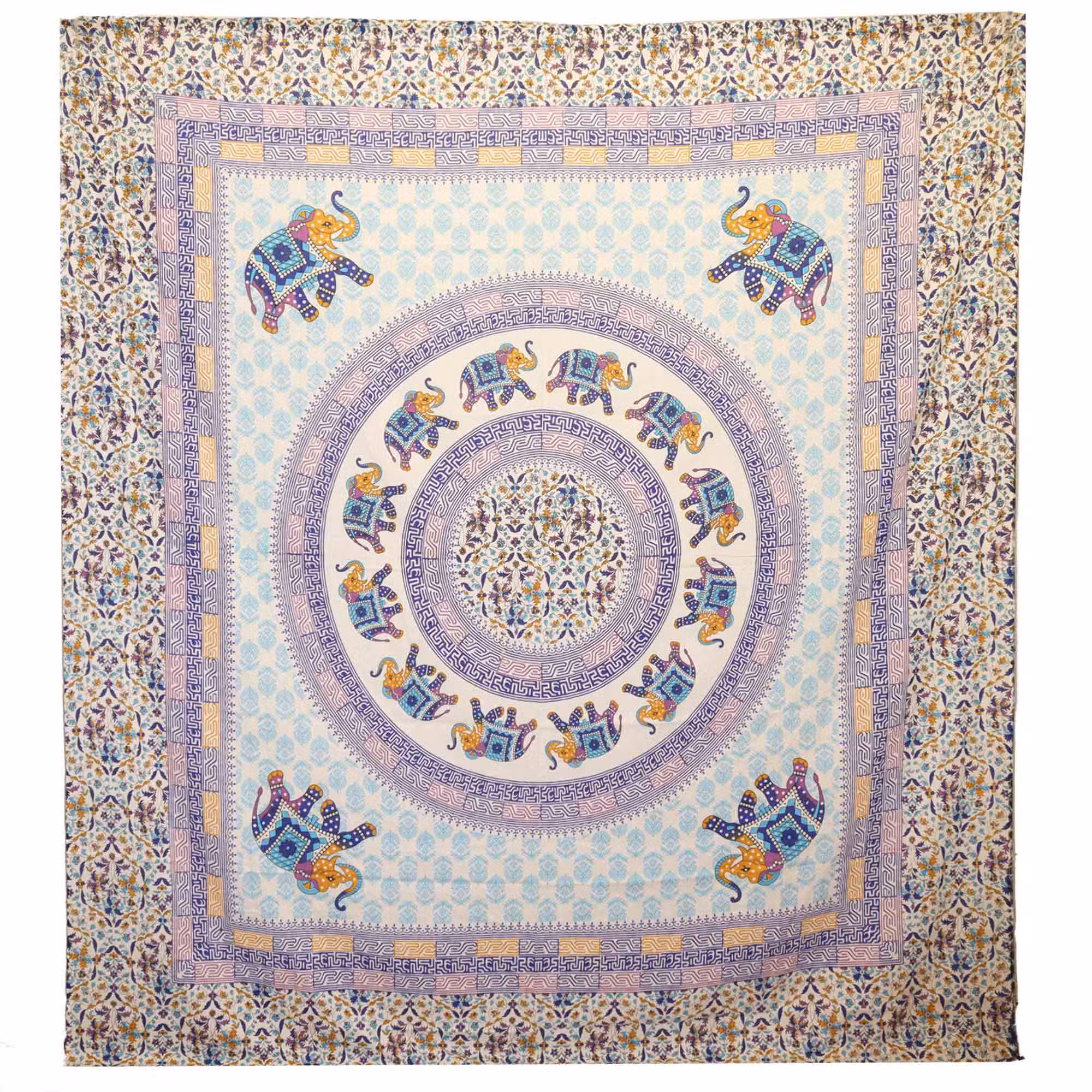 Tapeçaria de Parede Mandala Elefante Turquesa e Azul 212×193 cm