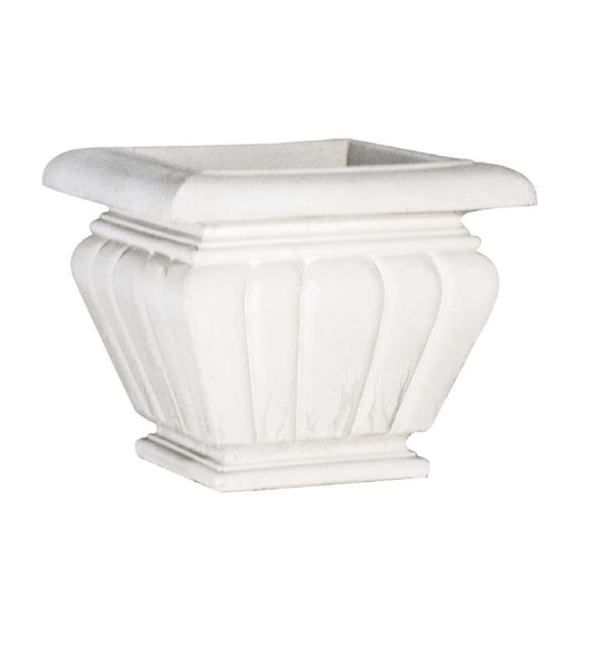 Vaso quadrado em betão, fabricado com betão normal e com um acabamento liso. Disponível na cor betão natural branco. Ideal para uso interior ou exterior.