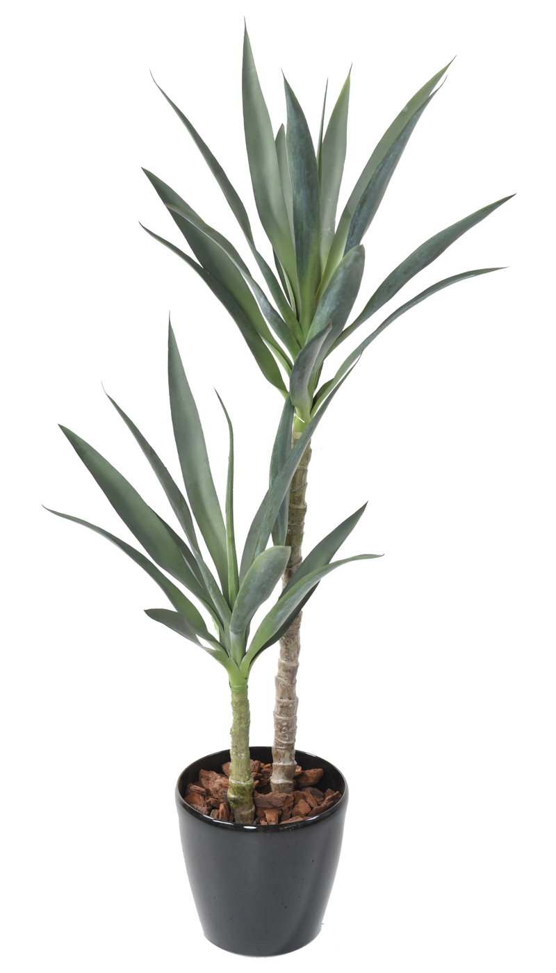 A Yucca Rapier artificial destaca-se com 110 cm de altura e 60 cm de largura, apresentando folhagem em poliéster para um visual autêntico e um vaso em PVC para estabilidade.